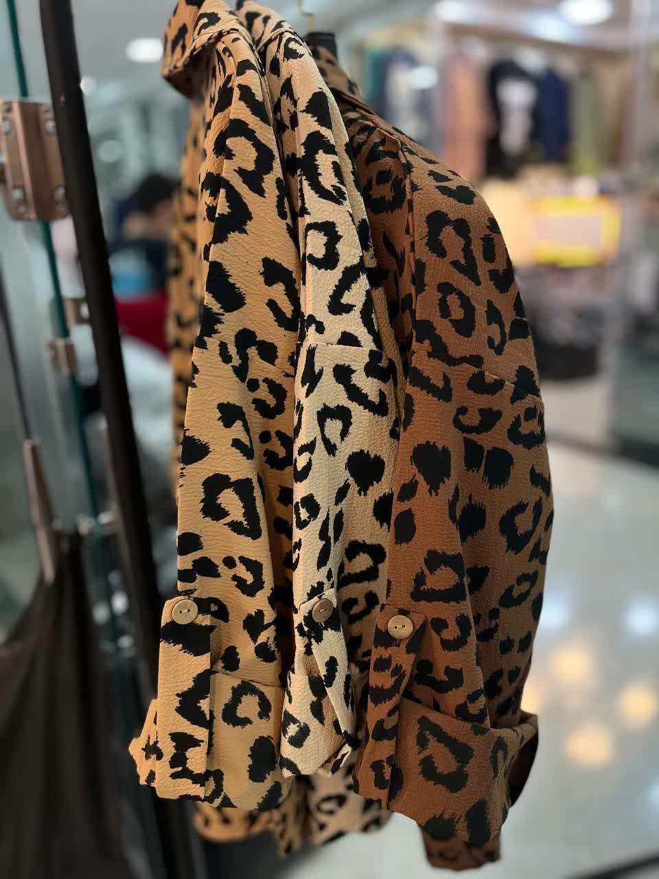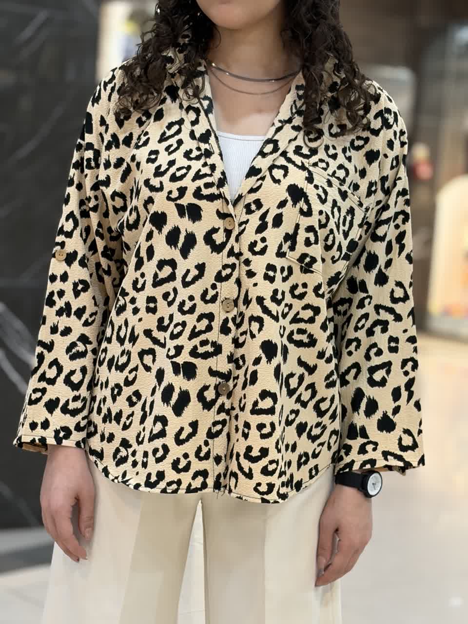 شومیز پلنگی نخی فری سایز از 36 الی 46 خنگ و اسپرت