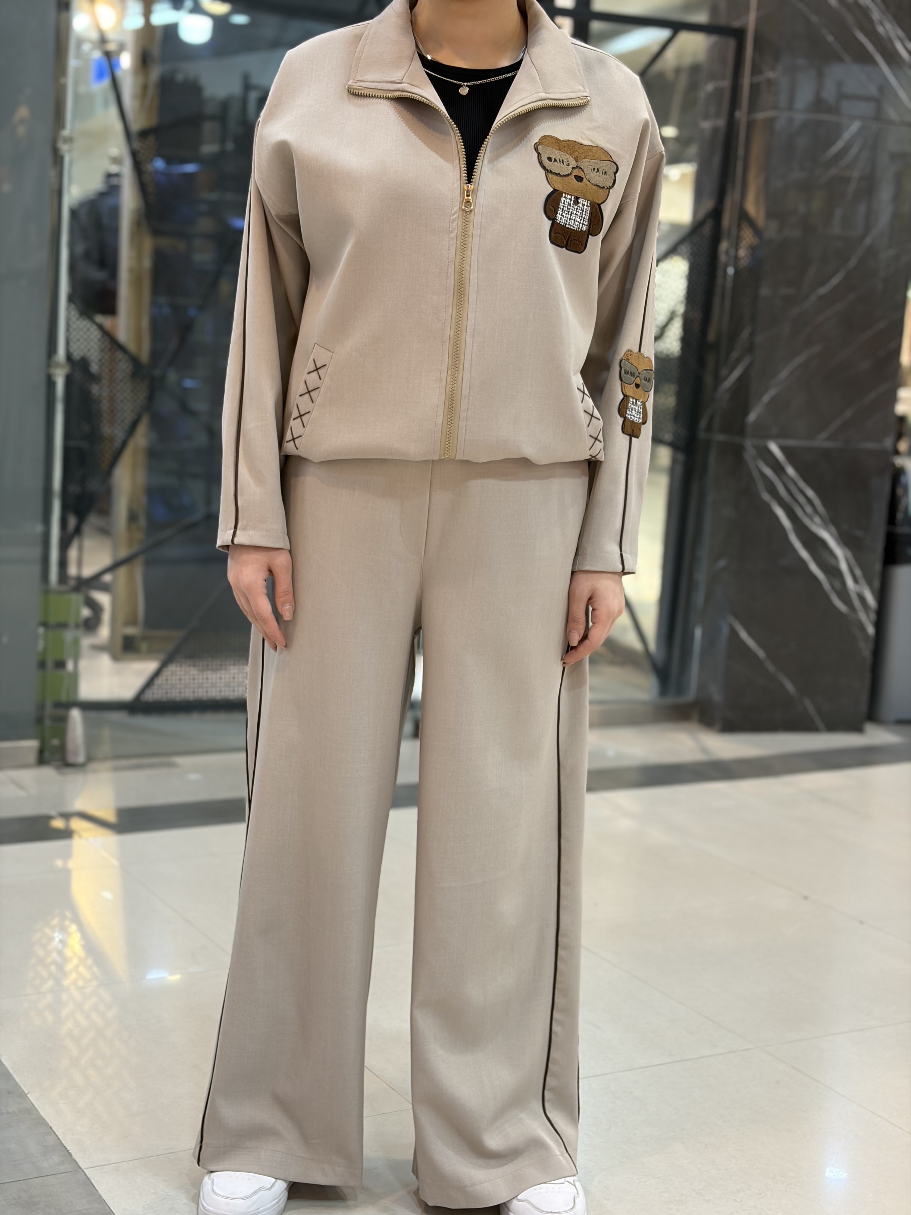 ست اسپرت ( تدی ) فری سایز مناسب برای 30 الی 44 جنس پارچه بزایاق شلوار مغزی دوزی شده بالا تنه گان کشی شده